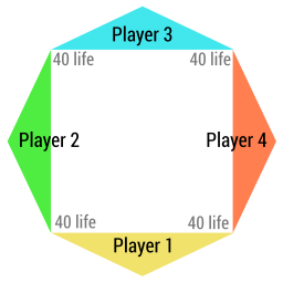 Life totals, poison counters, and commander damage are shared between neighbouring players and are referred to as "totems". Totems begin the game with the standard amount of life for the format (usually 20, but 40 for Commander). If a shared life total (totem) is at 0 or less life, receives 10 poison counters, or takes 21 combat damage from a single commander (if playing commander), both players sharing that totem lose the game. Spells and abilities can't prevent this.